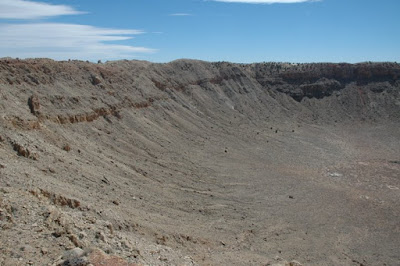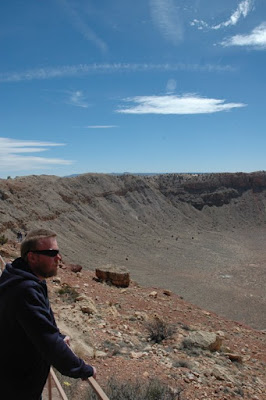 Lonely Planet boka fortalte om et prima hull sør for Winslow, så siden vi ennå var litt oppbrakte av mangelen på hull i fjell hos Apachene så tok vi en liten avstikker mot et meteor krater rett nedenfor Winslow. Dette er visst et at de best bevarte i landet og temmelig svære greier.