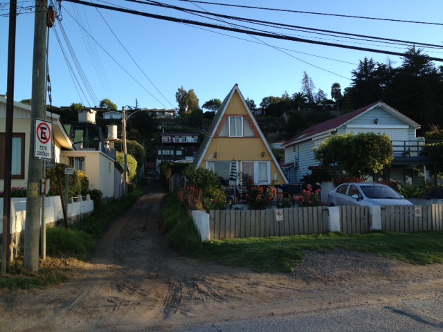 Dagen etter så tok vi ut fra Vina del Mar, ennå uten noen form for plan på hvor vi skulle annet en at vi skulle holde oss langs kysten. Vi hadde en stopp i Quintero i øsende regnvær, midt i et boligområde ved havet…vi tipper det var et boligområde, men det er usikkert for vi er også temmelig sikre på at det lå et fengsel rett der vi stoppet. Kan ha vært no militært… Vi er skjønt enige om at det å lære seg spansk står høyt på listen 🙂