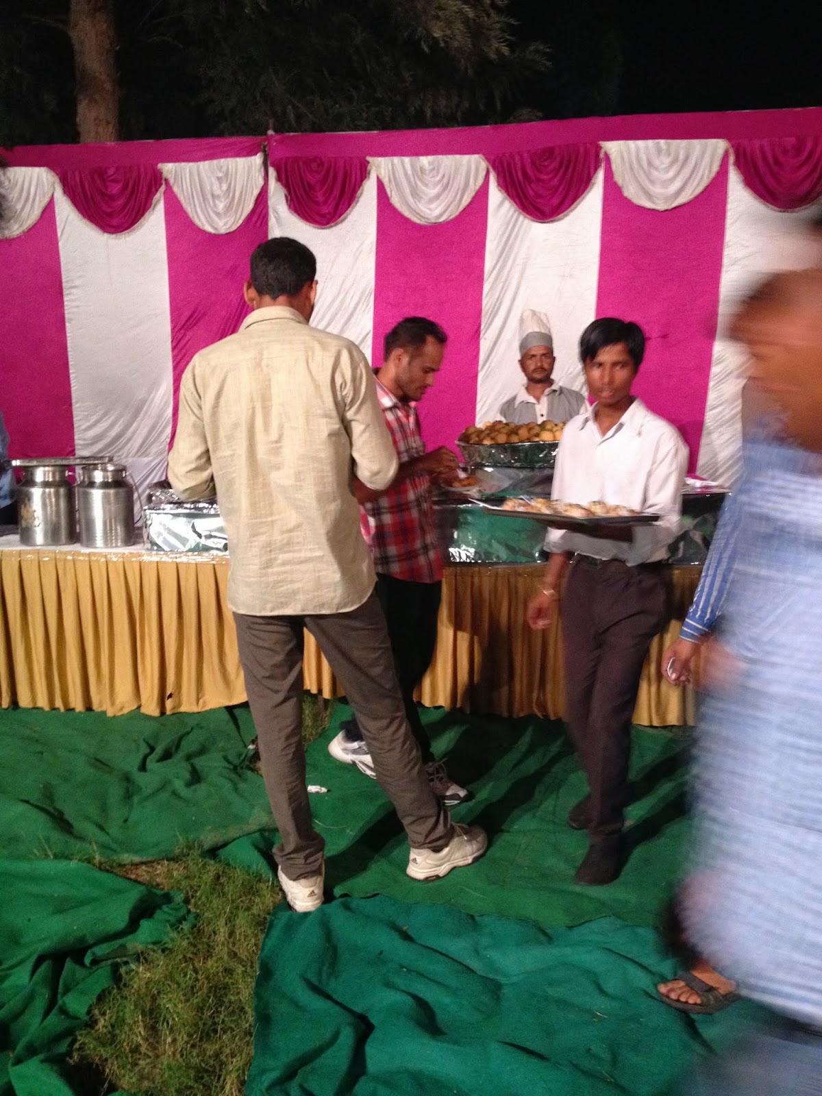 ca 700 mennesker på det meste her da, mat å drikke til alle dekkes av brudesn side – stort sett, det er vist mulig at brudgommens side tar noe, men forstod det ikke var vanelig… Dyrt sikkert? Jo – det er nok hysterisk dyrt opplegg dette. Jeg er ikke sikker på hvordan de får til det, men her er nok alle med å hjelper til da det er en sånn major event. Alkoholfritt og kun vegetar da, så det hjelper jo på.