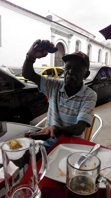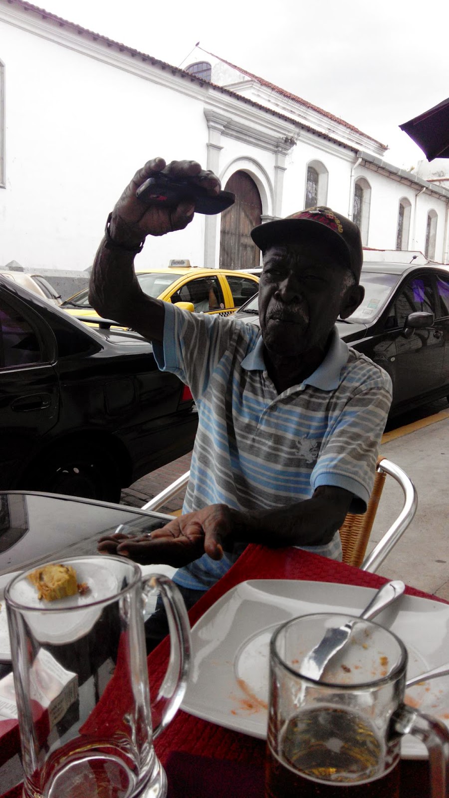 Vi ble fanget av en mann på nærmere 80 nede på det ene torget i gamlebyen. Han skulle ha et par dollar for å pushe oss til den ene resturanten som han jobbet for.
