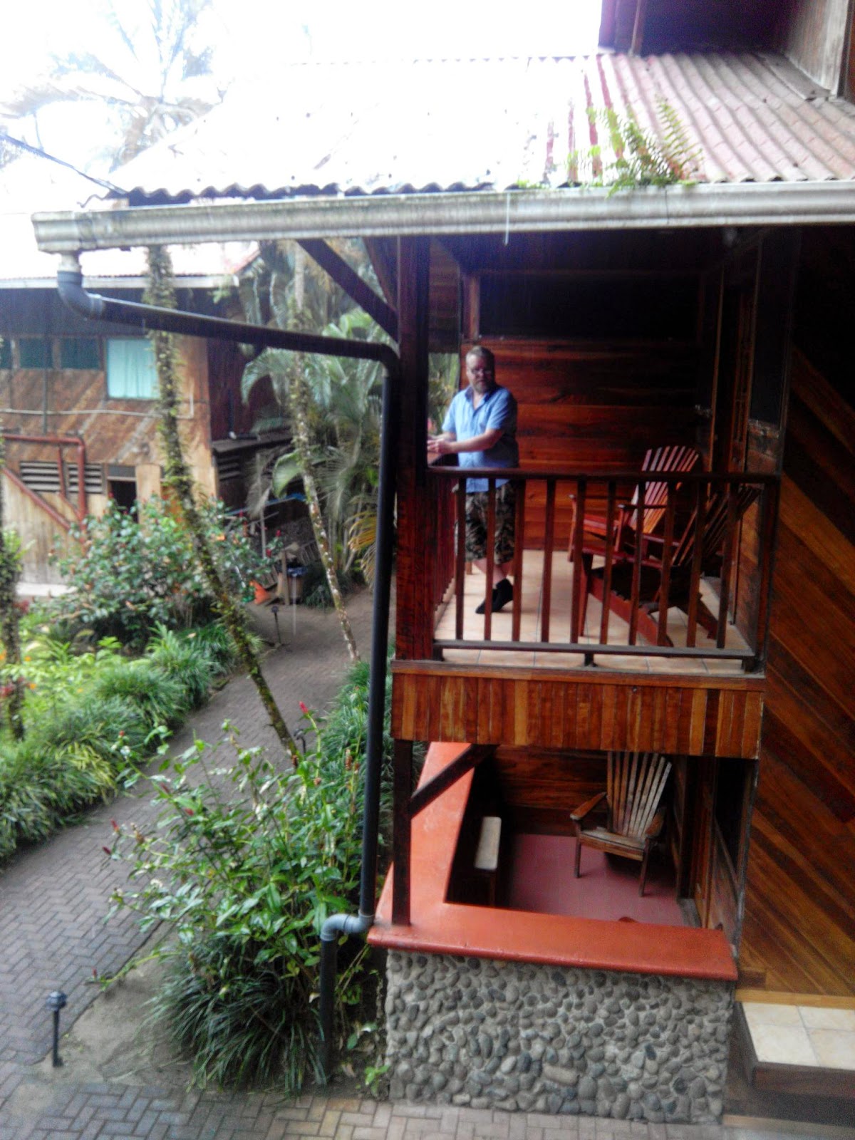 Vakt/guide fyren på den botaniskenhagen i Puerto Viejo, elendig bilde – elendig kamera.