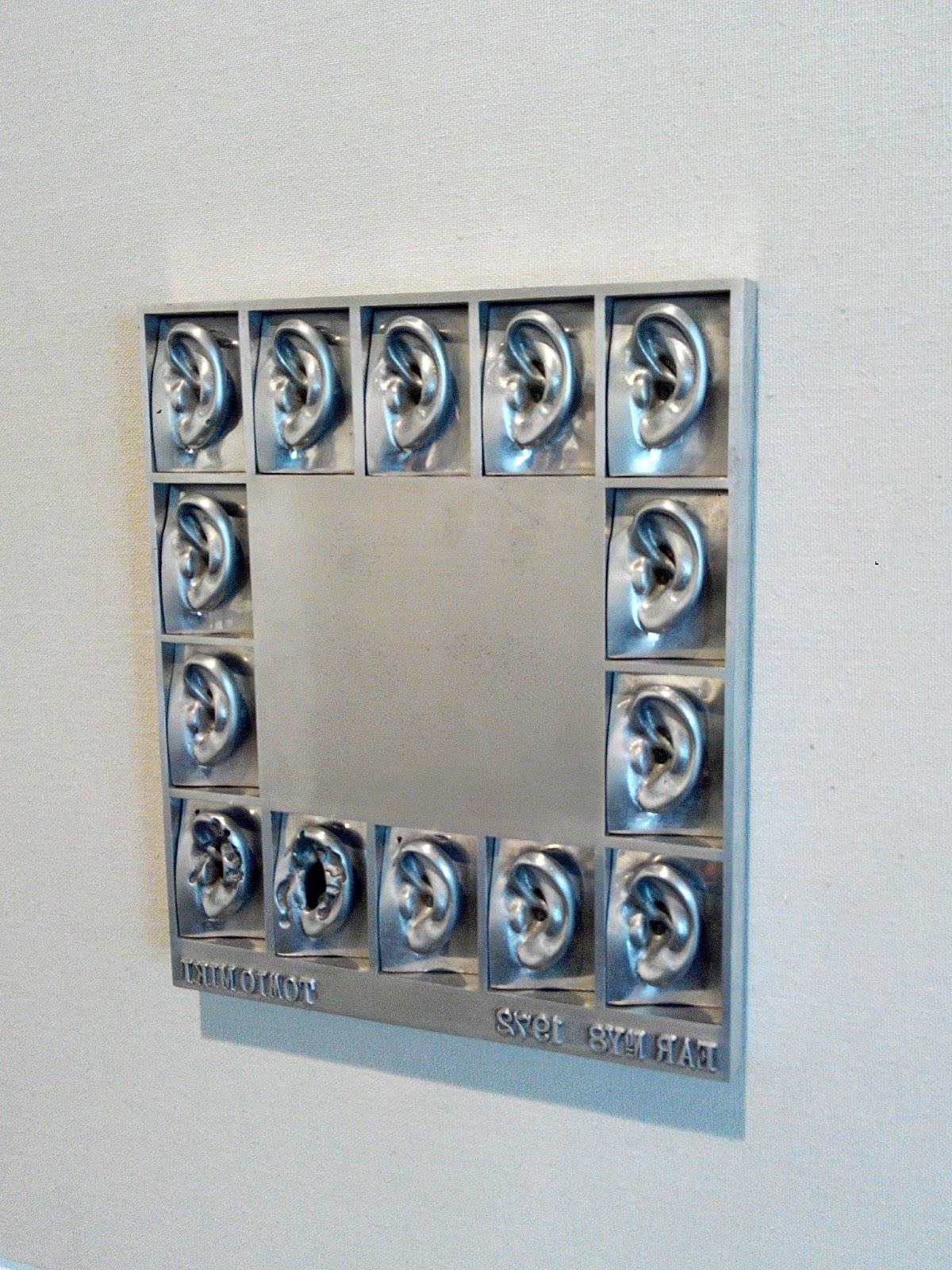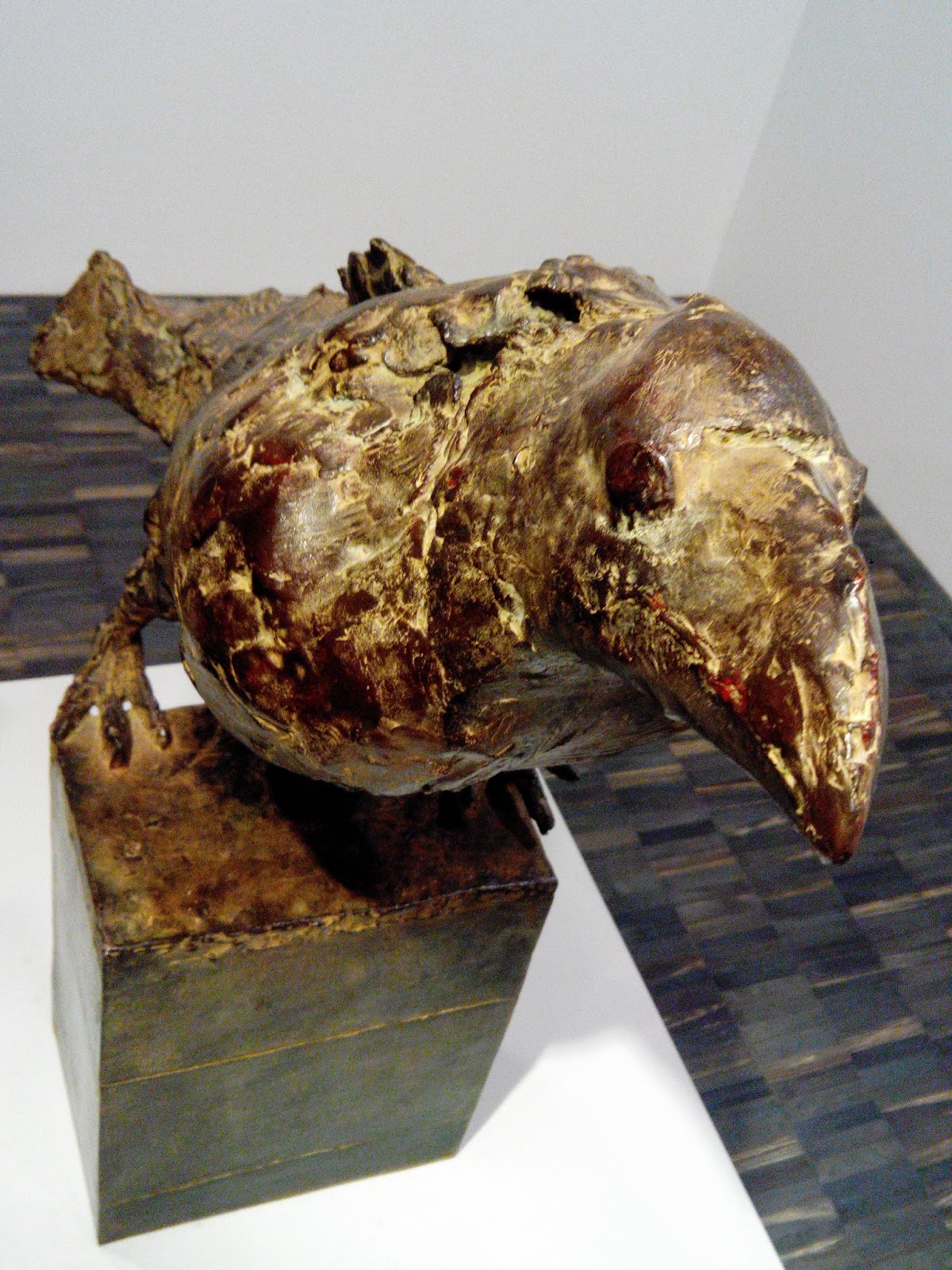 Der ser du han der over her. Sto slik, fallt inn i hjørnet bak seg, å så spratt han opp igjen. På tv skjermen ved siden av var det en annen eller samme fyr som satt på bakken å av og til slo en hånd i veggen. Stor kunt der altså ! .. Så var det også noen saker laget i metall (ikke allt man kunne ta bilder av ), som så ut som noen polerte industrideler. Flotte nok dem da 🙂 .. men.