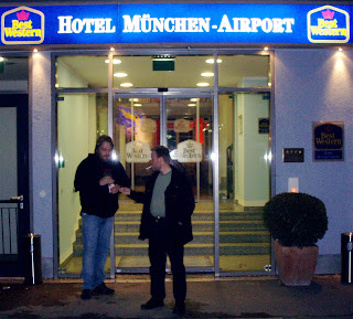 Men litt hell i uhellet skal man ha. Møtte på noen kompiser, som hadde vært i Alpene og stått ski. Det var Mortensen-brødrene, Jarle og Espen. De var på tur hjem til Norge. De hadde også trekt kølapp med flere hundre forran seg (flyet de tok var også forsinket). Men de fikk tak i en annen lapp, og rykket noen hundre plasser forran i køen. Vi benyttet sjangsen til å bruke denne muligheten til litt sikkelig sniking. Vi greide det, og fikk booket om billett til dagen etterpå fra Munchen til New York, hotell i Munchen (var lang kø der og 🙂 ). Men nå er alt vel.